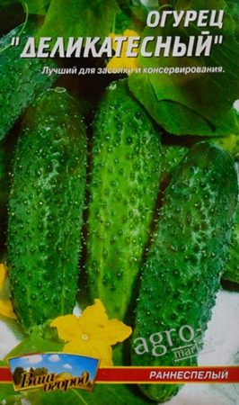 Ito ang mga mini-pipino, na kamakailan lamang ay napakapopular. Ang iba't-ibang ay kalagitnaan ng panahon at ang mga prutas ay maaaring makuha lamang sa ika-45 araw pagkatapos ng unang pagsikat ng araw. Ang branching ay average, ang mga prutas ay hugis-itlog nang walang tubercles. Ang ganitong uri ng pipino ay may mga puting spike, ang haba ng prutas ay bihirang umabot ng higit sa 8 cm.